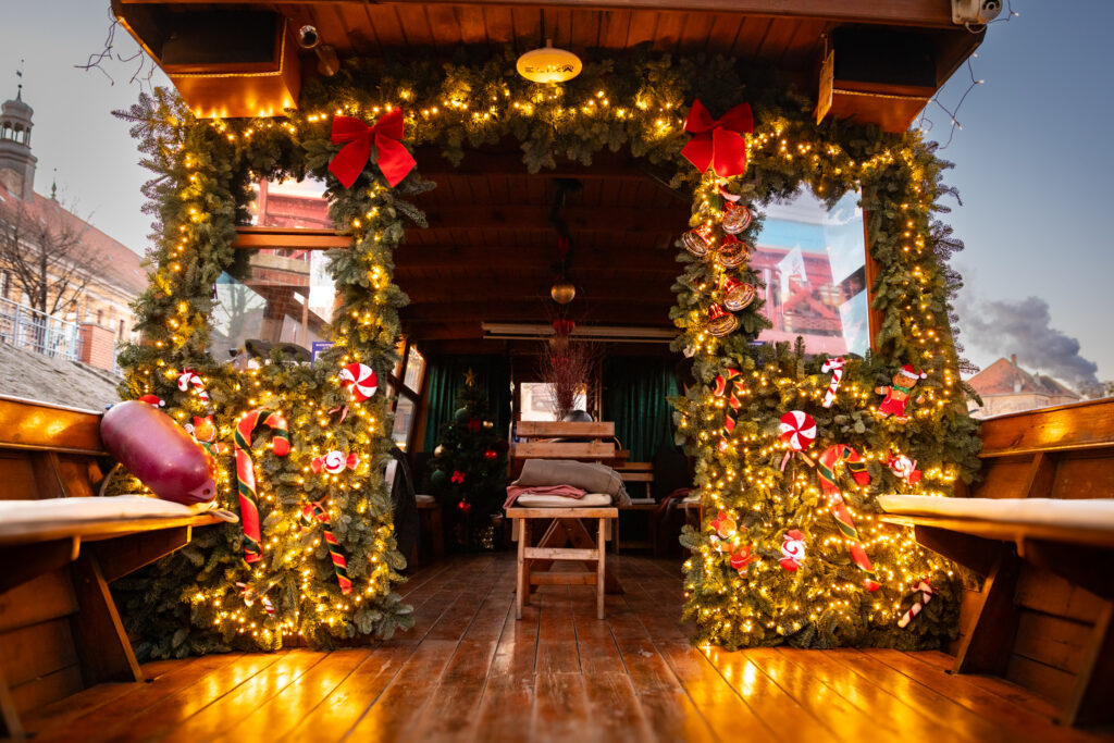 Na pokładzie panuje przyjemne ciepło, a za oknami rozgrywa się prawdziwy spektakl świateł. Statek sam staje się częścią tej zimowej magii, udekorowany w świątecznym stylu, który przenosi w bajkowy świat: